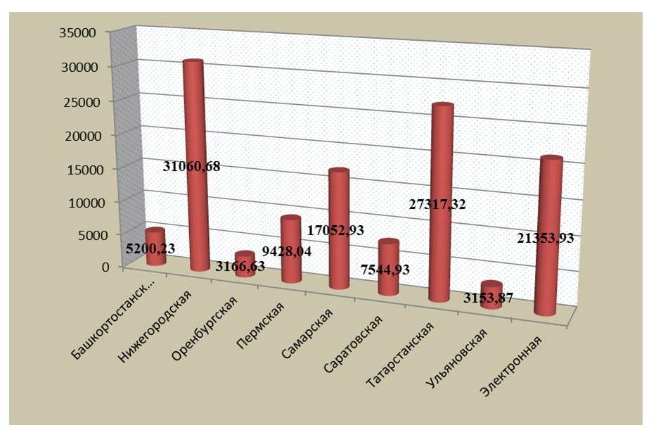 Перечисления в государственный бюджет таможнями Приволжского региона в 2018 году (млн. руб)