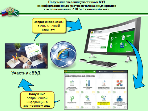 «Личный кабинет участника ВЭД» предназначен для персонифицированного информационного взаимодействия бизнеса с таможенными органами. Сегодня он включает в себя 34 сервиса для различных категорий пользователей (декларантов, перевозчиков, таможенных представителей и т.д.): «Электронное декларирование товаров», «Валютный контроль», «Административные правонарушения», «Калькулятор таможенных платежей», «Запрос статуса задекларированного товара», «Разрешительные документы» и другие.
