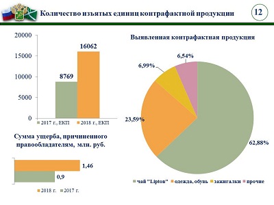 ФТС также сообщает, что таможенный реестр объектов интеллектуальной собственности пополнился 299 новыми объектами и по итогам года насчитывал 4 916 единиц.