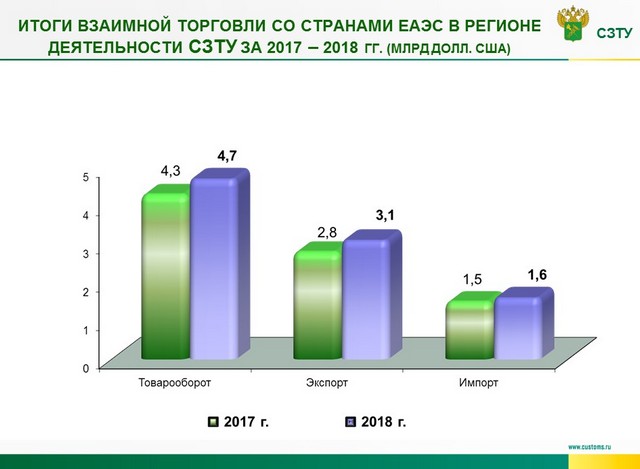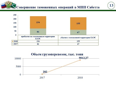 В 2018 году работа таможни была направлена на обеспечение выполнения задач и функций, возложенных на таможенные органы новым Таможенным кодексом Евразийского экономического союза, вступившим в силу с 1 января 2018 года, который вобрал в себя передовые наработки таможенных служб государств – членов Союза, существенно упростил таможенные процедуры, что привело к ускорению и упрощению перемещения товаров через таможенную границу Союза.
