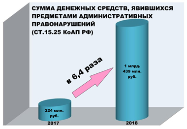 Кроме того, выросло число выявлений незадекларированных денежных средств. За прошлый год эта цифра составила 46,5 миллионов рублей, что в два раза больше, чем в 2017 году.
