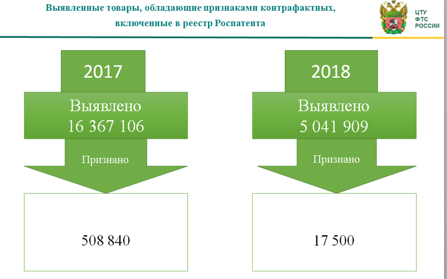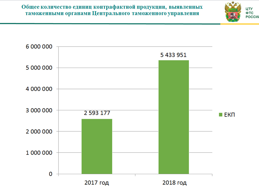 По результатам работы в 2018 году Центральное таможенное управление заняло первую позицию в рейтинге таможенных органов по количеству выявленных товаров признанных контрафактными.