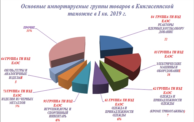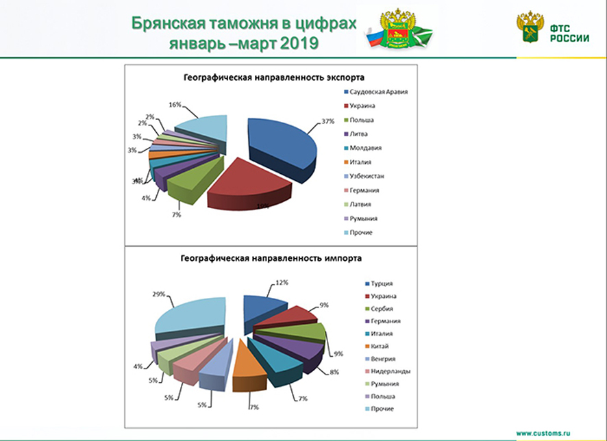 Объем запрещенных к ввозу в Российскую Федерацию составил 20 тыс. тонн, в том числе 0,8 тыс. тонн санкционной продукции. В сопредельные государства возвращено 18 тыс. тонн товаров, что на 41% превышает показатель 2018 года. При этом более чем в 2 раза сократился объем уничтоженных товаров: с 1,8 тыс. тонн в 1 квартале 2018 года до 0,8 тыс. тонн в 1 квартале 2019 года.