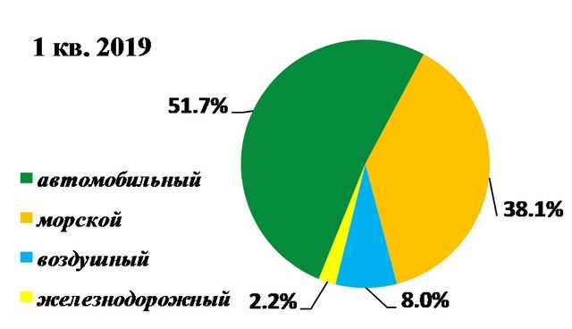 В 1 квартале 2019 года таможенными органами ЮТУ оформлено около 20 тыс. электронных транзитных деклараций, при этом доля товаров, выпущенных в электронной форме, составила около 94% от общих объемов, помещенных под таможенную процедуру таможенного транзита. Расширяется и практика предварительного декларирования товаров в соответствии с таможенной процедурой таможенного транзита в электронной форме – в 1 квартале 2019 г. с применением предварительного декларирования под процедуру помещено 1 326 партий товаров, в аналогичном периоде прошлого года данная технология была применена при декларировании 293 партий товаров.