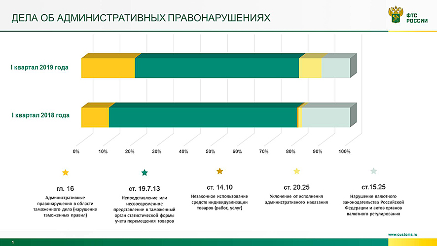 17 дел об административных правонарушениях возбуждено Магаданской таможней с начала 2019 года за непредставление либо нарушение порядка предоставления отчетности о товарах, помещенных под процедуру свободной таможенной зоны. Это почти в два раза больше, чем за 1 квартал 2018 года.