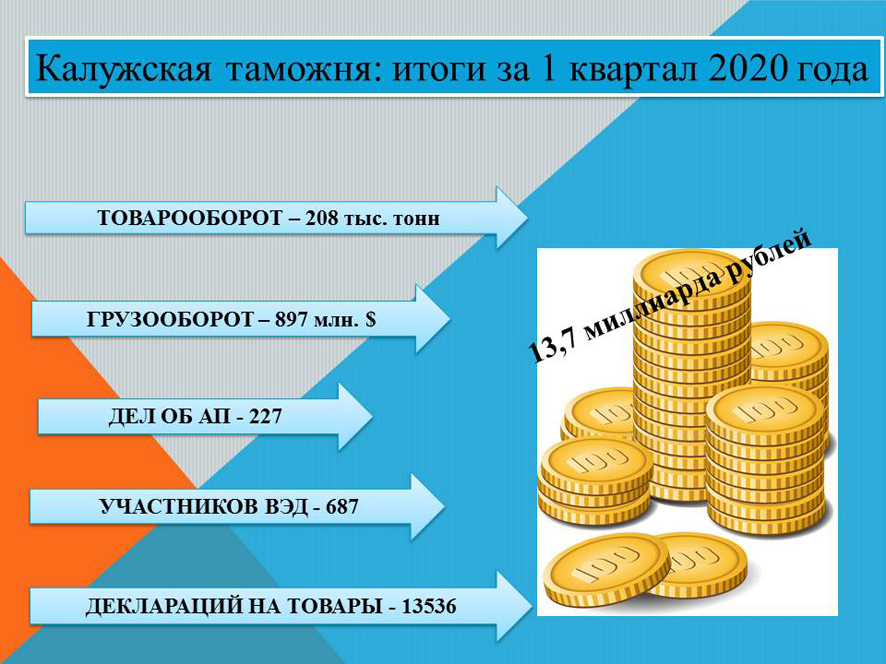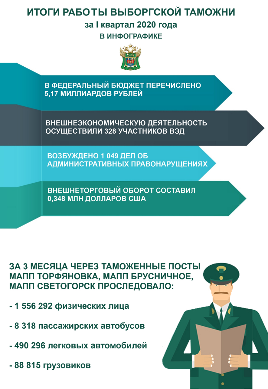В 1 квартале 2020 года с Владимирской таможней работали 1337 предприятий, организаций и физических лиц (в 2019 – 1002). Из них 18% зарегистрированы во Владимирской области, 13% в Ивановской области, остальные – в иных регионах Российской Федерации. В федеральный бюджет перечислено 10,3 миллиарда рублей, в аналогичном периоде 2019 года - около 7 миллиардов рублей.