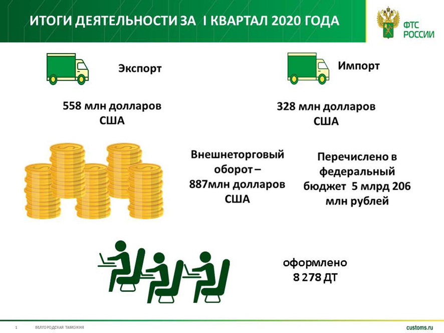 Таким образом, за три месяца 2020 года сумма доходов федерального бюджета, администрируемых таможенными органами, составила 1187,88 млрд рублей.