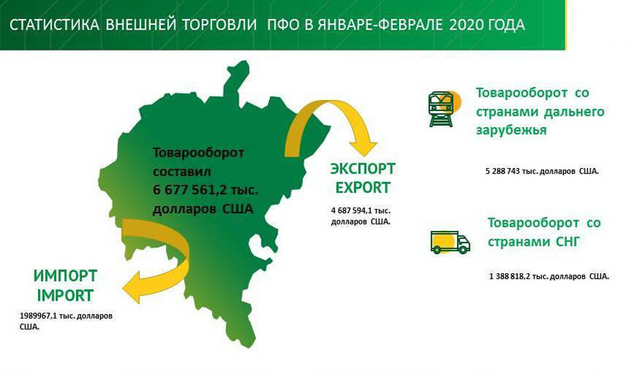 Грузооборот товаров в регионе в первом квартале 2020 года составил 2,4 млн тонн. Это на 8,1% больше, чем за аналогичный период прошлого года. Общая стоимость грузовых отправок составила $4,7 млрд. При этом, на экспорт оформлено почти 7 тыс. таможенных деклараций. Основная доля приходилась на рыбу, морепродукты, древесину, резину, черные металлы и другое. Главными партнерами по экспорту являются Китай (почти 50%), Республика Корея (30,8%), Япония (8,1%). Теже страны участвуют и в партнерских отношения по импорту.
