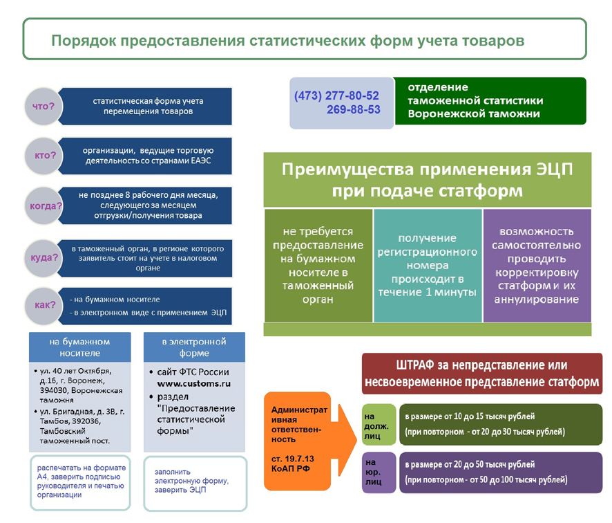 Обращаем Ваше внимание, что на официальном сайте Федеральной таможенной службы России (http://www.customs.ru) в разделе «Представление статистической формы» размещены подробные инструкции о порядке заполнения и отправки статистических форм, о порядке получения ЭЦП.