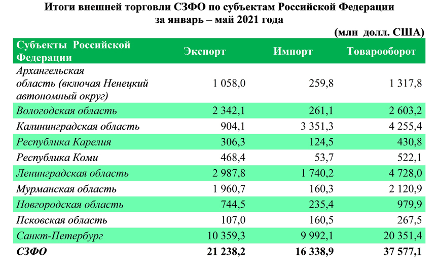 Если в 1 полугодии 2020 года в связи с пандемией объемы внешней торговли упали на 21% с 23,3 млрд до 18,5 млрд долларов США по сравнению с аналогичным периодом 2019 года, то в 2021 году отмечается устойчивый рост внешнеторгового оборота Сибирского региона. Положительная динамика наблюдается как в экспортных (+16,4%), так и в импортных (+11,7%) поставках. На экспорт в Сибири пришлось 77% или 16,6 млрд. долларов США, на импорт - 23% или 4,9 млрд. долларов США.