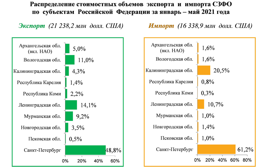 Внешнеторговый оборот НСО вырос на 11,5%. Экспорт увеличился на 21,3%, импорт - на 2,8%. Доля экспорта в стоимостном объеме внешнеторгового оборота составила 51,4%, импорта – 48,6%.