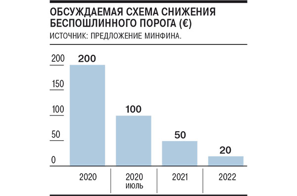 Правительство попросили не снижать порог беспошлинного ввоза товаров до €20. Такие меры с 2022 года предлагает ввести Минфин. Международная конфедерация обществ потребителей (КонфОП) в письме премьер-министру Дмитрию Медведеву отметила, что эта инициатива обернется сокращением ассортимента доступных россиянам товаров, ударит по малообеспеченным гражданам и жителям отдаленных районов, которые в складчину делают заказы в зарубежных интернет-магазинах. Порог беспошлинного ввоза снижается уже не в первый раз, новый лимит — €200 вместо €500 — ждет россиян уже с 1 января 2020 года.