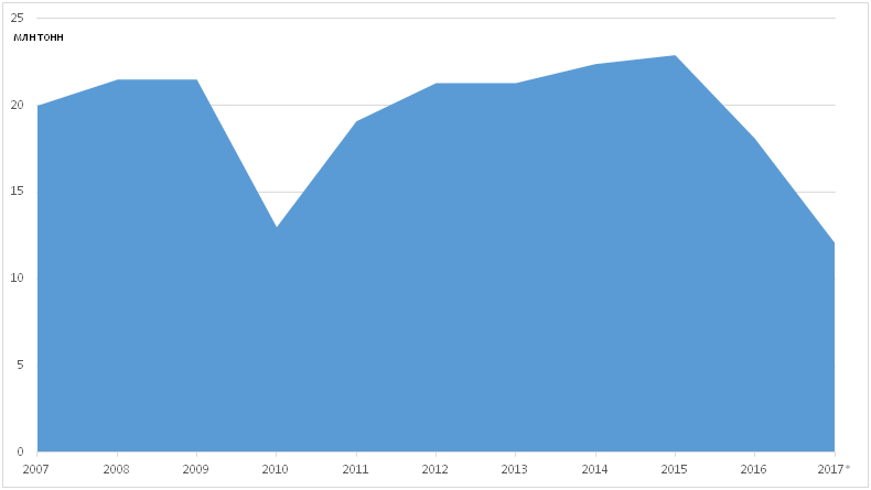 Что касается объема поставок российской нефти в Беларусь за 2017 г., сторонам вряд ли удастся достичь обещанного уровня в 24 млн т в год (за период январь-август было поставлено лишь 12,1 млн т). Однако в случае отсутствия резких движений стороны уже в 2018 г. смогут вернуться к стандартному (см. График 2) объему поставок в 22-23 млн т.