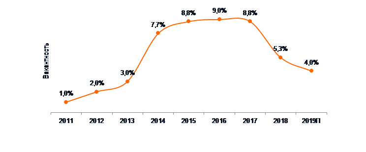 В материале отмечается, что доли вакантных складских помещений составили около 2% и 3% в классах А и В соответственно.